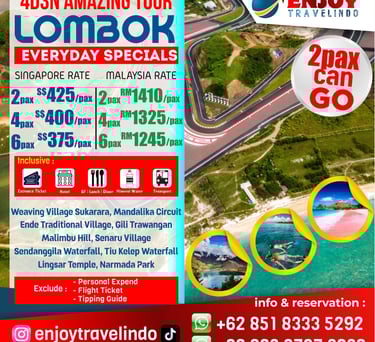 Dream Tour 4D3N Lombok Tour start from SGD 375/pax
